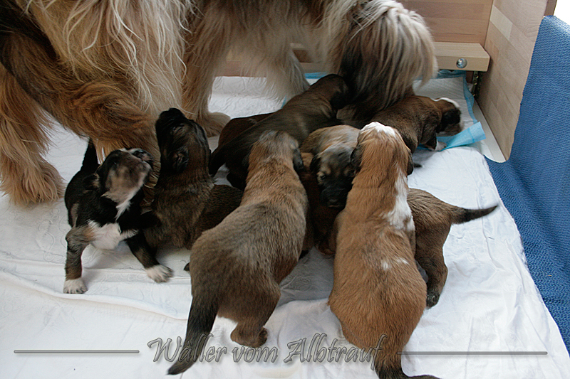 Die Welpen bei der Zuchtstätte Wäller vom Bodensee sind nun schon 2 Wochen alt und gedeien gut.