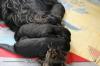 Die Geburt unserer C-Wurf Welpen war etwas speziell. Unser erster Welpe, eine Hündin, kam am 16.05. um 19.40 Uhr mit einem Geburtsgewicht von 386 gr auf die Welt. Zwei Stunden später, um 21.42 Uhr kam dann die zweite Hündin mit einem Geburtsgewicht von 398 gr auf die Welt. Nun warteten wir auf die Geburt weiterer Welpen, doch es kamen keine mehr. Cibi ging es gut, so dachten wir es bliebe bei diesen 2 Welpen. Einen Tag darauf bekam die Cibi dann aber nochmal Presswehen. Wir waren sehr erstaunt darüber. so ging das zweieinhalb Stunden. Zwischendurch immer mal wieder raus in den Garten und die Beine vertreten. Nichts passierte. Langsam machten wir uns Sorgen und riefen dann bei unserem Tierarzt an. Die Cibi brachte dann auf der Fahrt zum Tierarzt unseren kleinen Rüden zur Welt. Da lag er, fein säuberlich gereinigt, abgenabelt und zufrieden säugend.