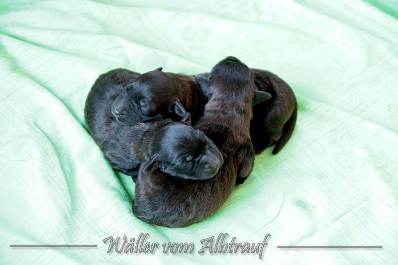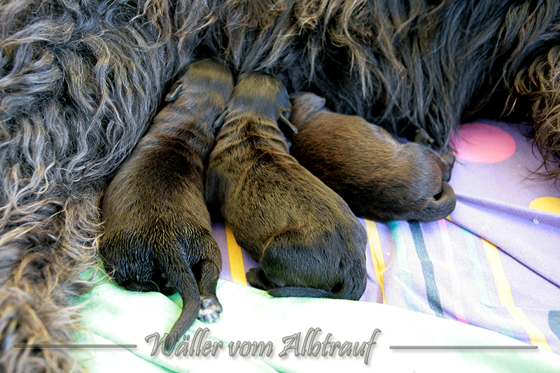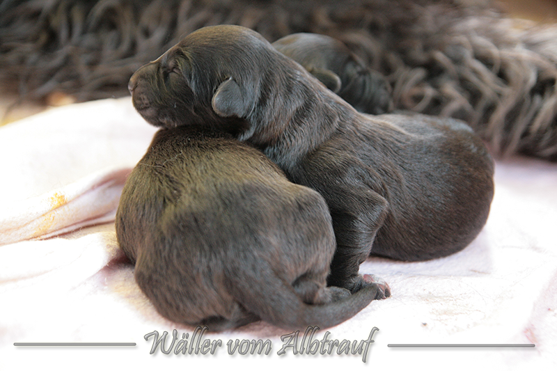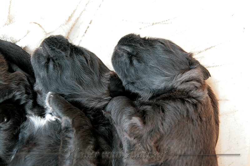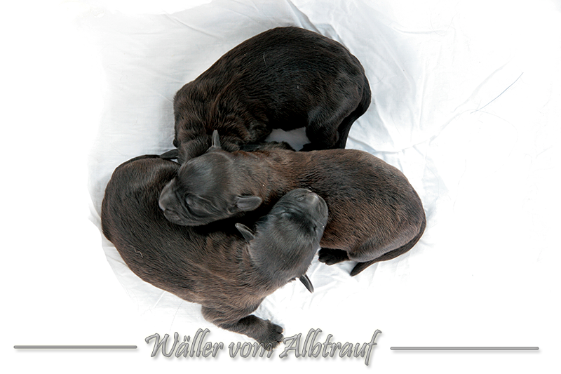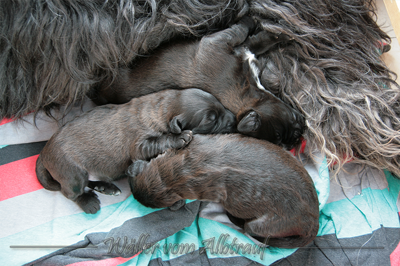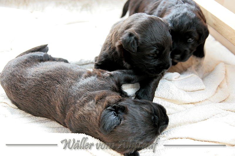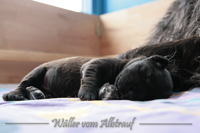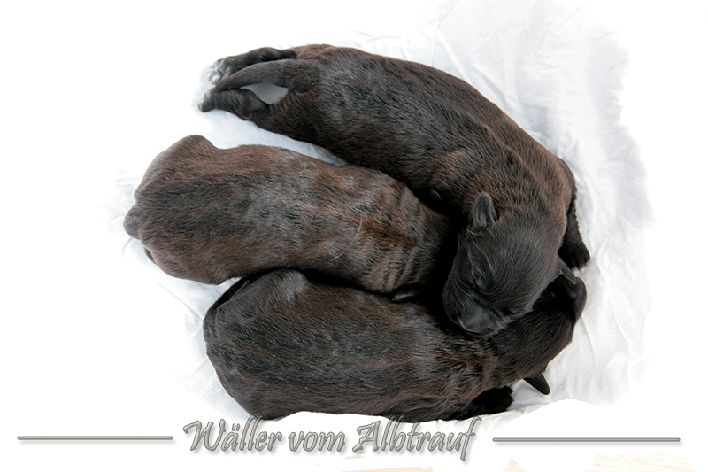 Am 11.02.2013 brachte Cibi von Sam 2 Rüden und eine Hündin zur Welt. Im Abendlicht schienen alle ganz schwarz zu sein. Doch am nächsten Tag bei Tageslicht konnte man sehr gut einen dunklen Erdfarbenen Ton sehen.