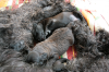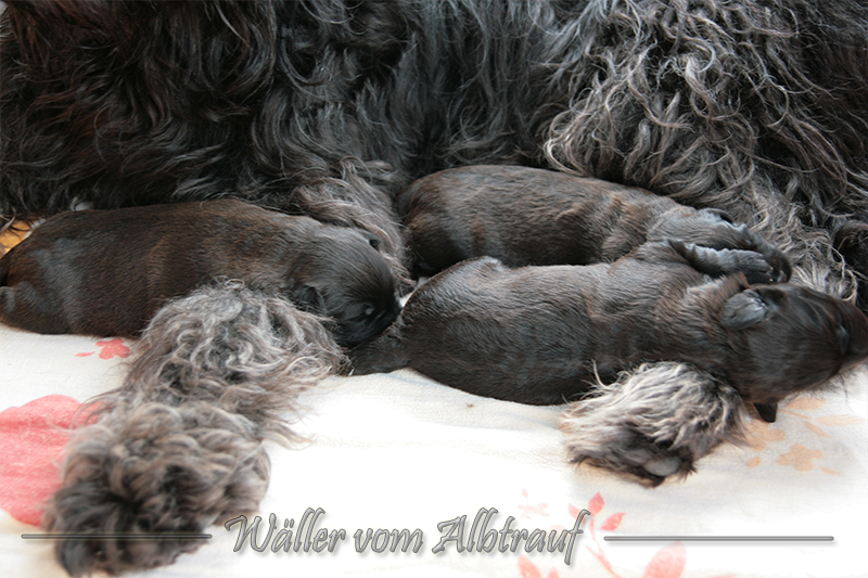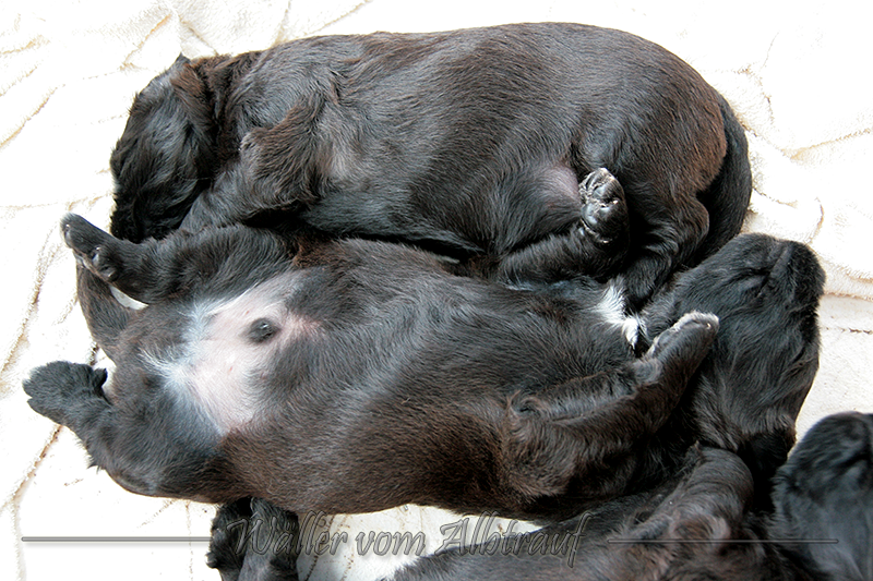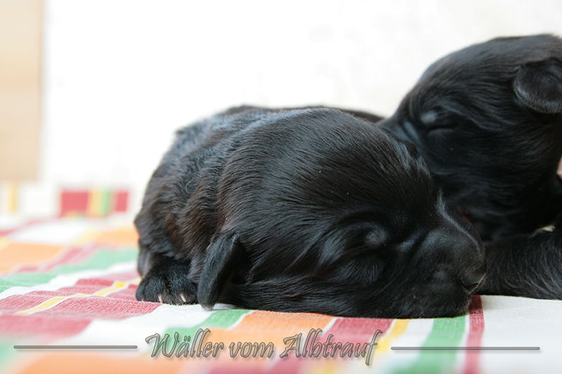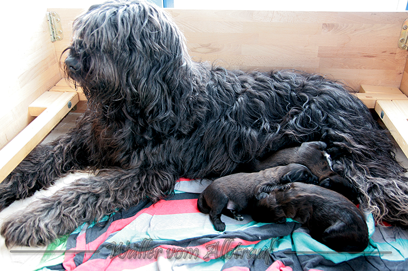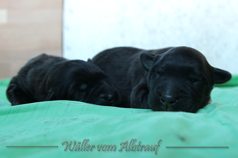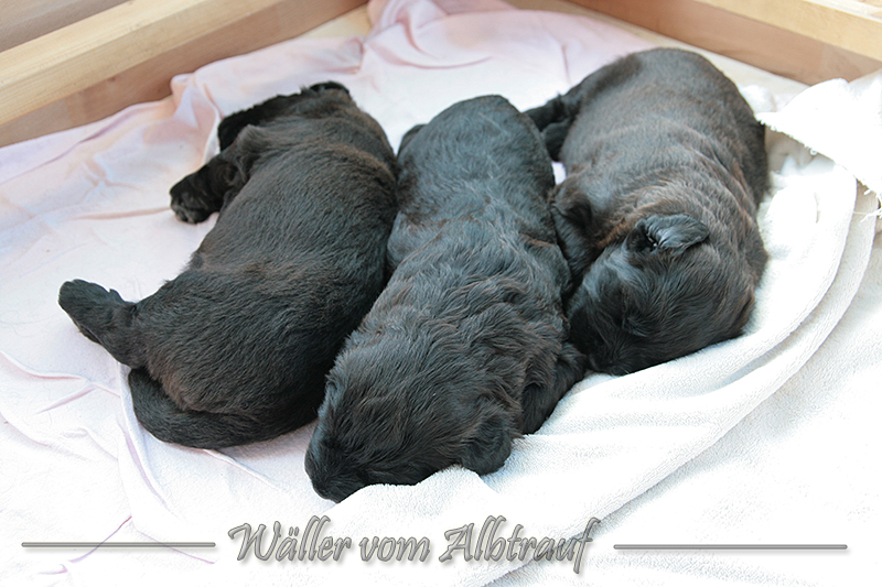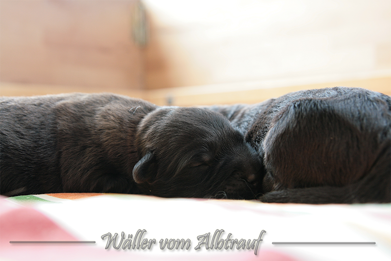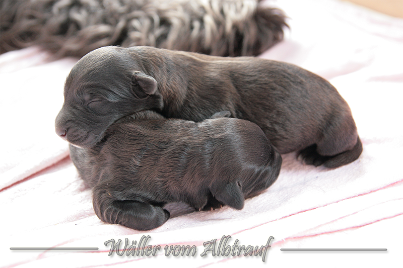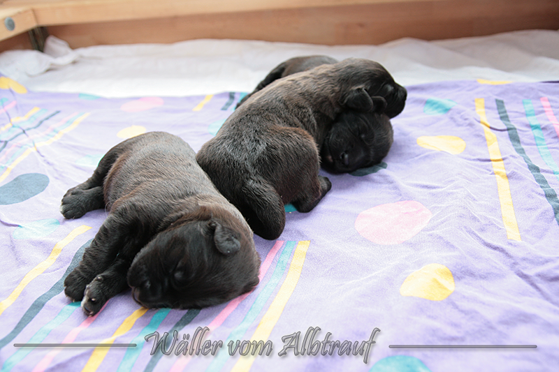 Am 11.02.2013 brachte Cibi von Sam 2 Rüden und eine Hündin zur Welt. Im Abendlicht schienen alle ganz schwarz zu sein. Doch am nächsten Tag bei Tageslicht konnte man sehr gut einen dunklen Erdfarbenen Ton sehen.