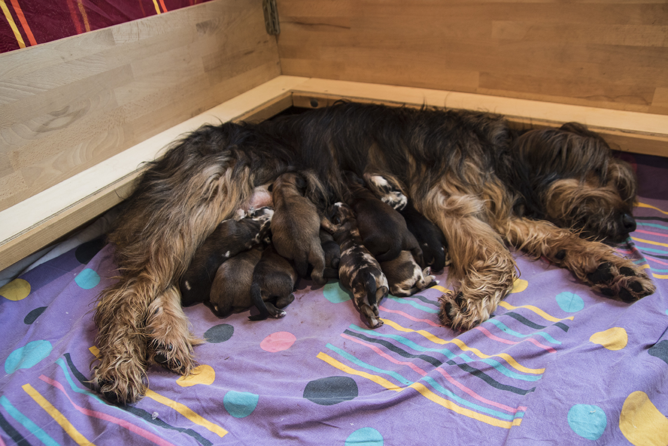 Wir lassen unseren Hündinnen aber genügend Zeit sich von einem Wurf zu erholen und setzen deshalb mindestens eine Läufigkeit aus. Da unsere Batú einen Langen Zyklus hat, wird das also erst in ca. 2 Jahren soweit sein.
